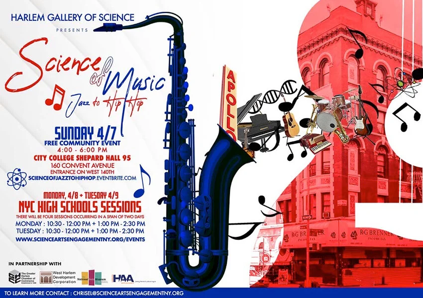 Dubbed “the Universal Language” by scholars of many disciplines, music is a powerful force that shapes culture and moves the soul. HGS’ second pop-up, The Science of Music: From Jazz to Hip Hop, was held in April, 2019 at The City College of New York in collaboration with Our Children’s Foundation.